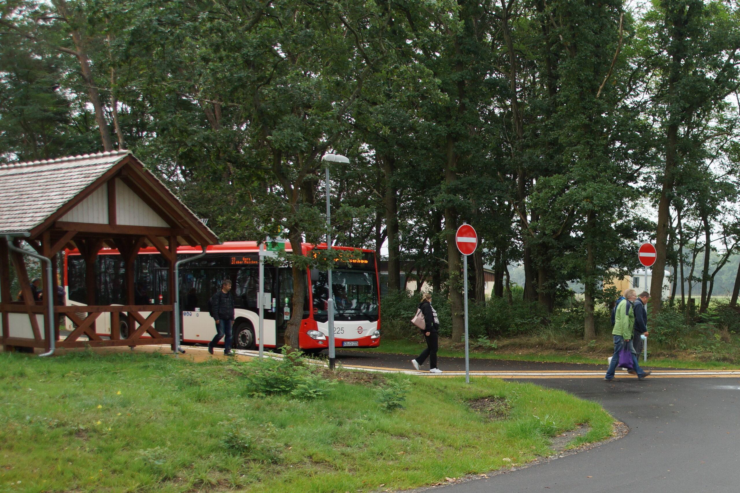 Dieser „Biohof Auguste“ liegt an der stark befahrenen Kreisstraße K 7130 von Cottbus nach Kolkwitz. Seit 2014 fuhr „Cottbusverkehr“ eine nicht barrierefreie provisorische Bus-Haltestelle an, die es Mitarbeitern des Biohofs ohne körperliche Beeinträchtigung ermöglichte, selbständig an- und abzureisen. Nach erfolgreicher Antragstellung erfolgte im März 2019 die „Zuwendung des Landes Brandenburg gemäß Richtlinie des Ministeriums für ländliche Entwicklung, Umwelt und Landwirtschaft über die Gewährung von Zuwendungen für die Förderung der ländlichen Entwicklung im Rahmen von Leader vom 25.09.2018.“