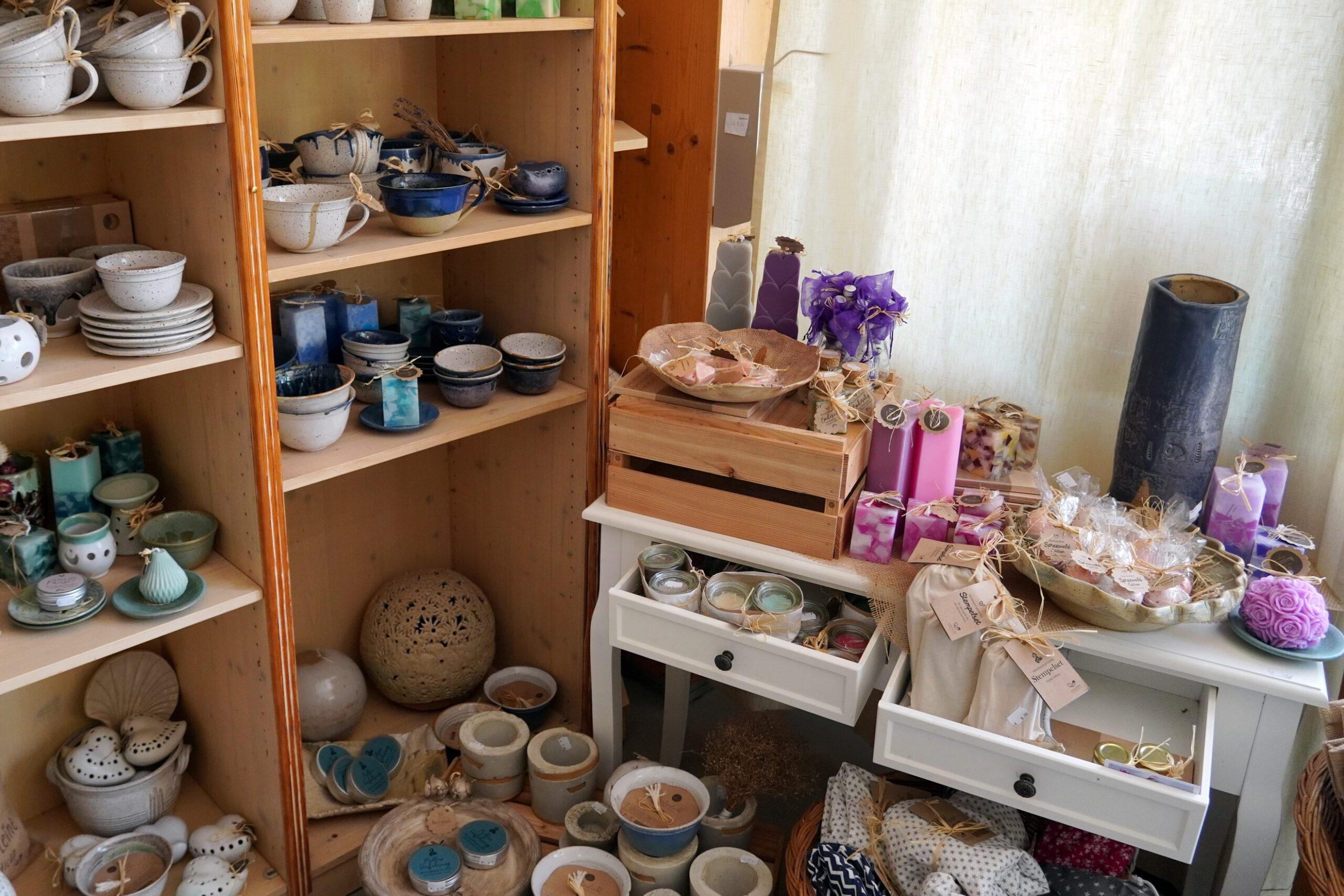 Wir bieten Ihnen saisonale, erntefrische und getrocknete Kräuter und Gemüse aus unserem Garten. Das Angebot im Hofladen wird durch unsere Eigenprodukte aus den Bereichen Feine Küche, Keramik, Schreinerei, Näherei und Biohof Auguste ergänzt.